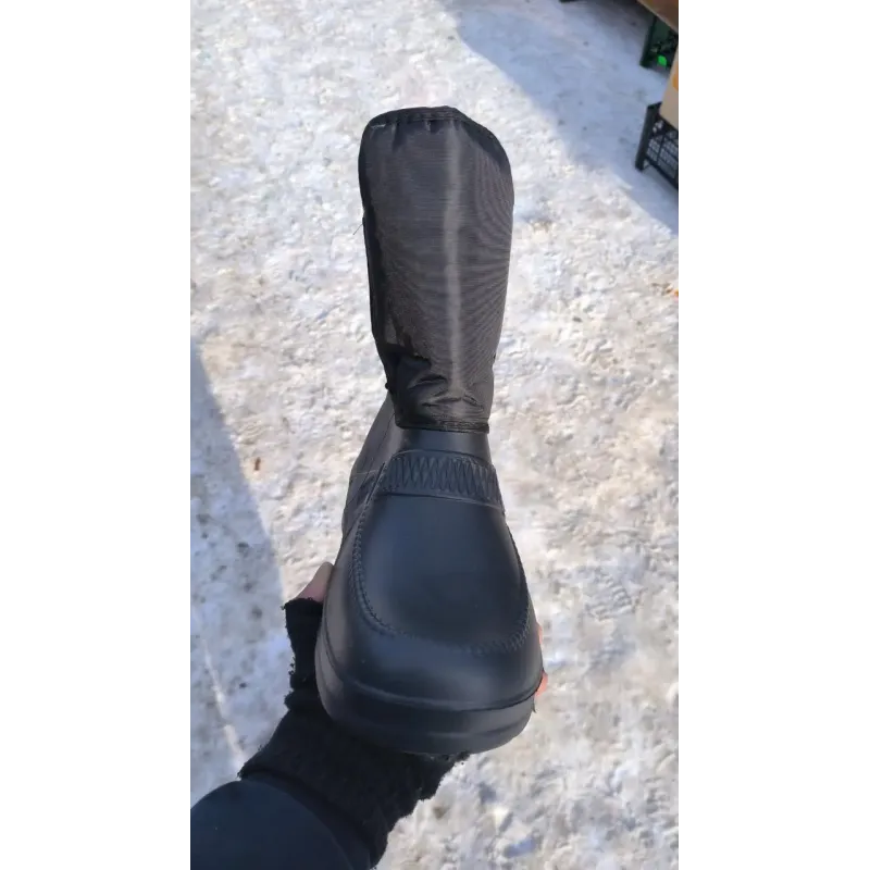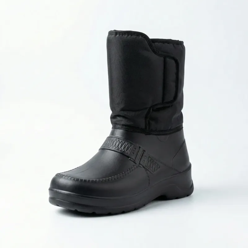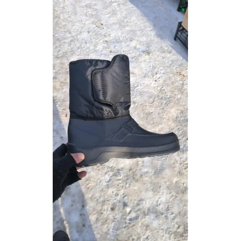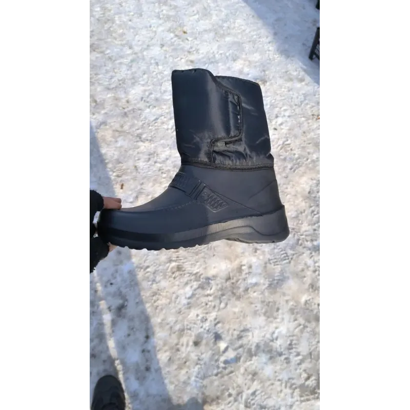 Універсальні та практичні чоловічі зимові чоботи, які стануть незамінними в холодну та мокру погоду. Ця модель розроблена з акцентом на зручність взування: завдяки широкій халяві та великій застібці на липучці, чоботи легко одягати навіть людям з високим підйомом ноги або широкою стопою. Нижня частина взуття відлита з сучасного матеріалу ЕВА (пінка), який є на 100% водонепроникним, дуже легким та відмінно утримує тепло, не пропускаючи холод від землі. Верх виготовлений з міцного текстилю, який захищає від вітру та снігу. Всередині чоботи утеплені густим штучним хутром. Це чудовий бюджетний варіант для повсякденного носіння у селі, на дачі, для прогулянок із собакою чи прибирання снігу. Підошва має рифлену структуру для запобігання ковзанню. Характеристики: Тип взуття: Дутики / Чоботи комбіновані Матеріал низу: Піна ЕВА (суцільнолита, легка) Матеріал верху: Водовідштовхувальний текстиль Утеплювач: Штучне хутро Застібка: Широка липучка (зручний вхід) Сезон: Зима / Холодна осінь Колір: Чорний Розміри: 41-46
