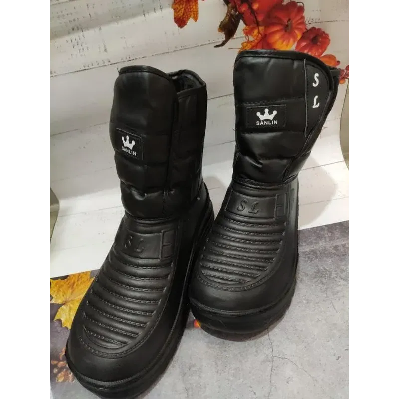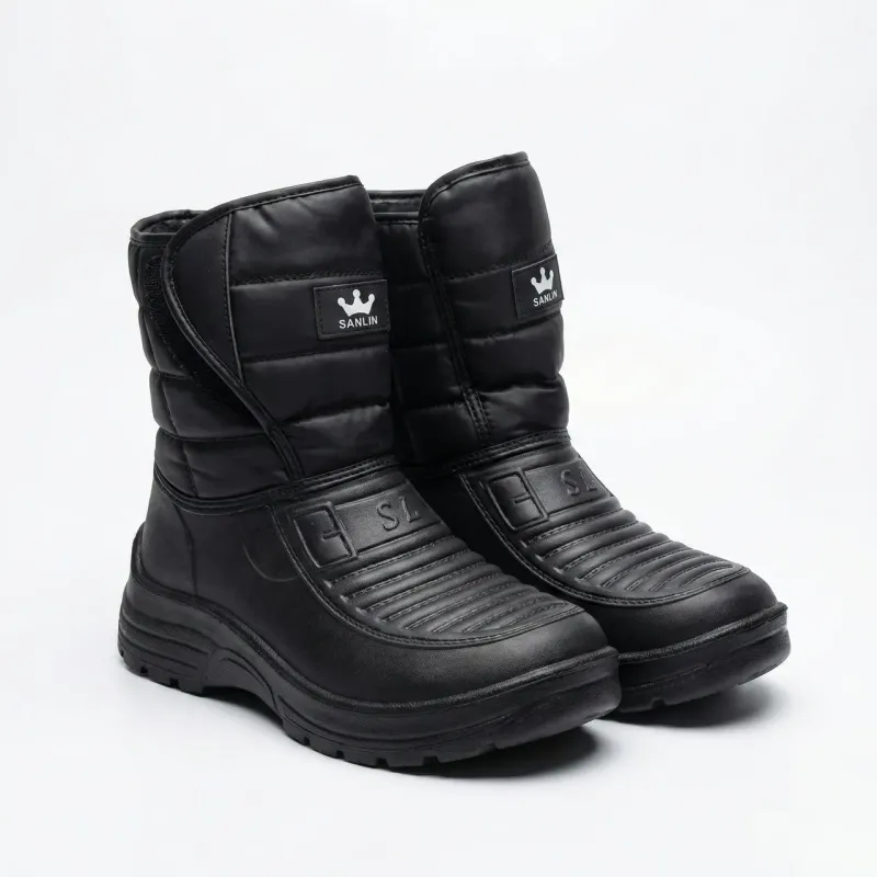 Практичні та теплі чоловічі чоботи-дутики від перевіреного бренду Sanlin — це надійний захист ваших ніг у зимову негоду. Модель ідеально підходить для сльоти, мокрого снігу та бруду завдяки комбінованій конструкції. Нижня частина (калоша) відлита з легкого та морозостійкого матеріалу ЕВА (пінка), який не пропускає вологу та чудово зберігає тепло. Верхня частина виготовлена з щільного водовідштовхувального текстилю. Збоку розташована зручна широка липучка, яка дозволяє швидко взуватися та регулювати ширину халяви під будь-який об'єм ноги або товщину штанів. Всередині чоботи утеплені густим штучним хутром, що забезпечує комфорт навіть при низьких температурах. Це взуття незамінне для повсякденного використання у приватному секторі, поїздок на дачу, прогулянок із собакою або роботи на вулиці. Стильний чорний дизайн з логотипом "Sanlin" виглядає охайно та сучасно. Характеристики: Тип взуття: Дутики / Сноубутси / Чоботи комбіновані Матеріал низу: Піна ЕВА (EVA) - цільнолита, водонепроникна Матеріал верху: Водовідштовхувальний текстиль (плащівка) Утеплювач: Штучне хутро Застібка: Липучка (Velcro) Сезон: Зима / Холодна осінь Колір: Чорний Бренд: Sanlin Розміри: 41-45