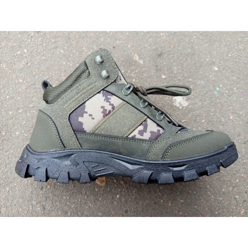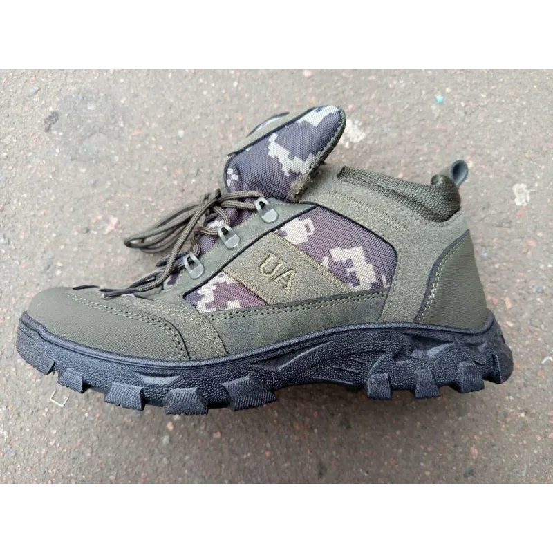 Зустрічайте зиму в патріотичному стилі з надійними чоловічими кросівками серії "UA Tactical"! Ця модель розроблена спеціально для тих, хто шукає міцне, тепле та недороге взуття для складних умов. Ідеально підходять для пересіченої місцевості, активного відпочинку, полювання або як змінне взуття для військовослужбовців. Чому варто обрати цю модель: Дизайн: Стильне поєднання кольору хакі (олива) та вставок камуфляжу "Піксель". На бічній стороні розміщено вишитий логотип "UA", що підкреслює українське виробництво або стилістику. Тепло: Всередині кросівки повністю утеплені густим штучним хутром, яке надійно зберігає тепло навіть при мінусових температурах. Матеріали: Верх виготовлено з якісного штучного нубука у поєднанні зі зносостійким текстилем. Це забезпечує захист від вітру та вологи. Підошва: Потужна протекторна підошва ("тракторна") гарантує відмінне зчеплення зі снігом та брудом, не ковзає і довго не стирається. Шнурівка з металевими петлями дозволяє надійно зафіксувати взуття на нозі, а м'який язичок запобігає натиранню. Характеристики: Стиль: Мілітарі / Тактичний Колір: Хакі (Олива) + Піксель Матеріал верху: Еко-нубук + Текстиль Утеплювач: Штучне хутро Підошва: ПВХ (посилений протектор) Застібка: Шнурівка Розміри: 41, 42, 43, 44, 45