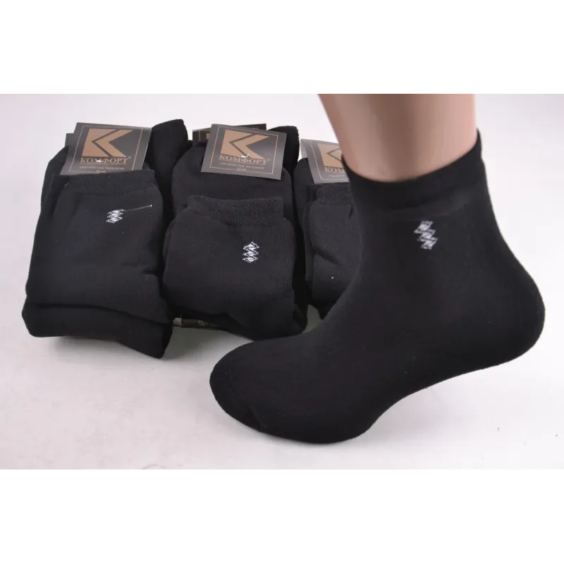 Якісні чоловічі зимові шкарпетки від популярної торгової марки "КОМФОРТ". Ця модель створена для тих, хто надає перевагу натуральним матеріалам. В основі виробу — високоякісна бавовна (cotton), яка дозволяє шкірі дихати та не викликає алергії. Зсередини шкарпетки утеплені щільною махрою, яка відмінно зберігає тепло навіть у сильні морози, забезпечуючи м'якість та комфорт при ходьбі. Завдяки натуральному складу ноги в такому взутті не "паряться" і залишаються сухими, що дуже важливо для здоров'я стоп взимку. Шкарпетки мають зручну, в міру тугу гумку, яка не сповзає і не перетискає ногу. Вони стійкі до протирання та добре переносять прання, не втрачаючи форми. Характеристики: Бренд: КОМФОРТ. Матеріал: Бавовна (Cotton) — натуральний, дихаючий. Тип: Махра (зимові, утеплені зсередини). Колір: Чорний / Асорті (темні кольори). Розмір: Універсальний (41-47). Сезон: Зима.