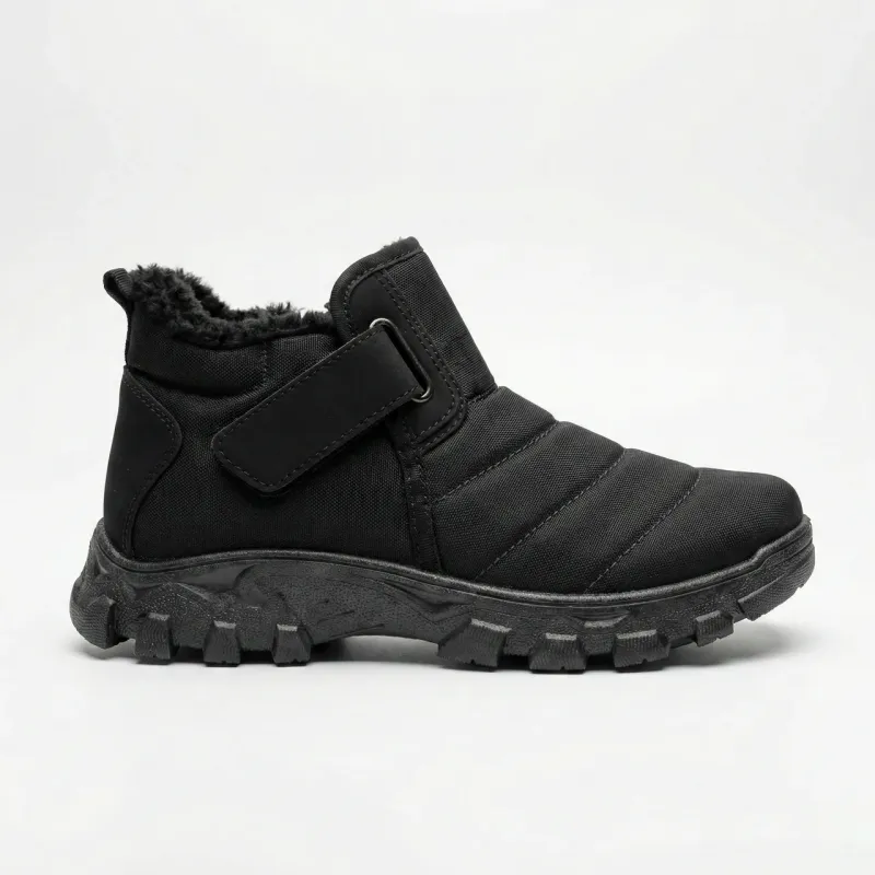 Шукаєте зручне та тепле взуття, яке легко взувати? Ці чоловічі зимові черевики — ідеальне рішення для щоденного використання. Модель поєднує в собі комфорт "дутиків" та практичність міських черевиків. Особливо підійде для людей з високим підйомом або широкою стопою, а також для старшого покоління. Чому варто обрати цю модель: Легке взування: Черевики оснащені одразу двома видами застібок — блискавкою збоку та широкою липучкою зверху. Це дозволяє максимально широко розкрити взуття та зафіксувати його по нозі за лічені секунди. Тепло: Всередині модель повністю утеплена густим, м'яким еко-хутром чорного кольору, яке чудово зберігає тепло навіть у сильні морози. Практичність: Верх виконаний з щільного текстилю з водовідштовхувальним ефектом (плащівка). Носок та п'ятка посилені вставками з еко-шкіри для захисту від збивання та вологи. Надійна підошва: Масивна рифлена підошва забезпечує гарне зчеплення зі снігом та ізолює стопу від холодної землі. Це чудовий вибір для прогулянок, поїздок на дачу, риболовлі або роботи на вулиці. Характеристики: Сезон: Зима Матеріал верху: Текстиль (плащівка) + Еко-шкіра Утеплювач: Штучне хутро Застібка: Блискавка + Липучка (Velcro) Підошва: ПВХ (протекторна) Колір: Чорний