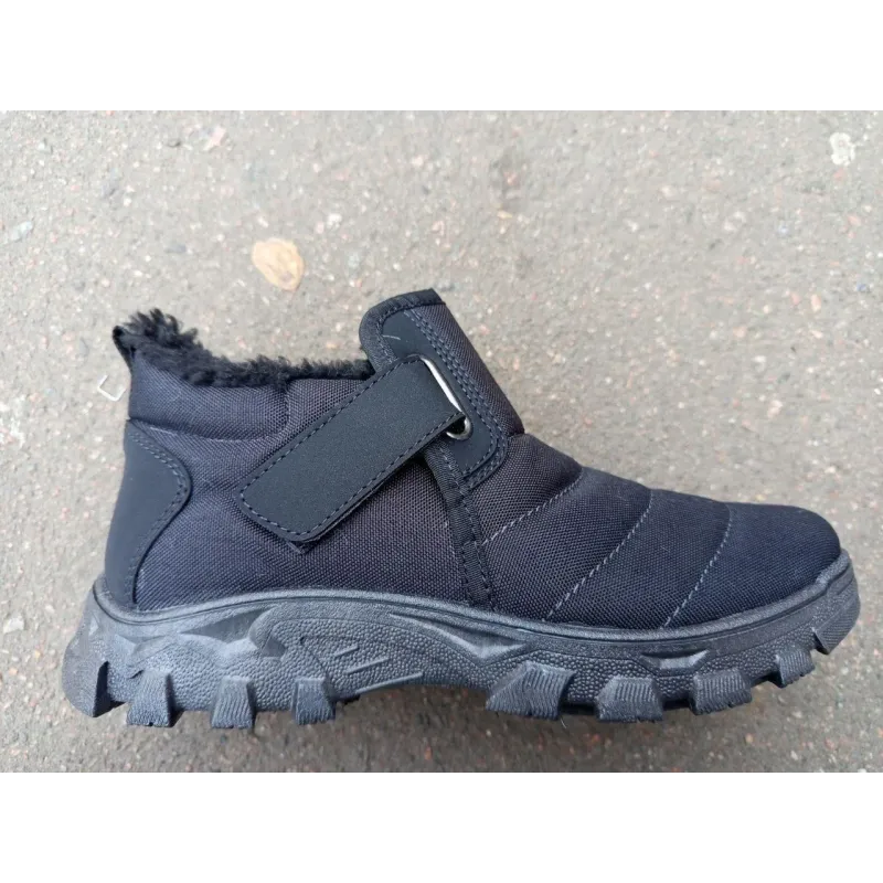 Шукаєте зручне та тепле взуття, яке легко взувати? Ці чоловічі зимові черевики — ідеальне рішення для щоденного використання. Модель поєднує в собі комфорт "дутиків" та практичність міських черевиків. Особливо підійде для людей з високим підйомом або широкою стопою, а також для старшого покоління. Чому варто обрати цю модель: Легке взування: Черевики оснащені одразу двома видами застібок — блискавкою збоку та широкою липучкою зверху. Це дозволяє максимально широко розкрити взуття та зафіксувати його по нозі за лічені секунди. Тепло: Всередині модель повністю утеплена густим, м'яким еко-хутром чорного кольору, яке чудово зберігає тепло навіть у сильні морози. Практичність: Верх виконаний з щільного текстилю з водовідштовхувальним ефектом (плащівка). Носок та п'ятка посилені вставками з еко-шкіри для захисту від збивання та вологи. Надійна підошва: Масивна рифлена підошва забезпечує гарне зчеплення зі снігом та ізолює стопу від холодної землі. Це чудовий вибір для прогулянок, поїздок на дачу, риболовлі або роботи на вулиці. Характеристики: Сезон: Зима Матеріал верху: Текстиль (плащівка) + Еко-шкіра Утеплювач: Штучне хутро Застібка: Блискавка + Липучка (Velcro) Підошва: ПВХ (протекторна) Колір: Чорний