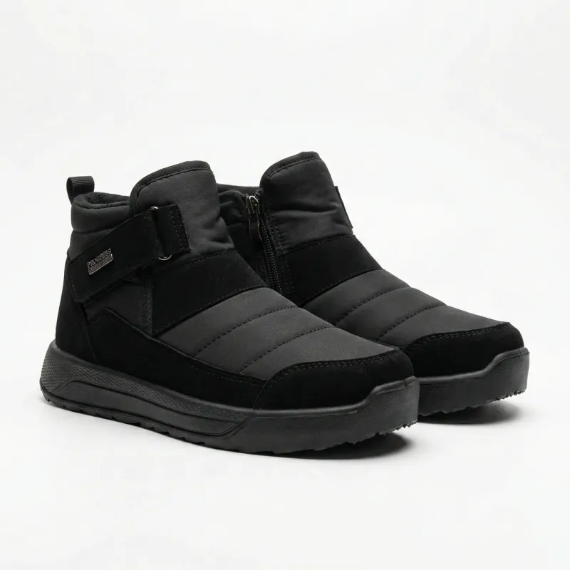 Зустрічайте зиму впевнено з новими чоловічими черевиками від бренду Progress. Ця модель — ідеальний вибір для тих, хто шукає баланс між спортивним стилем та міським комфортом. Особливості моделі: Практичний дизайн: Верх виконаний з комбінації стьобаного текстилю (плащівки) та щільних вставок з еко-нубуку по канту, що захищає взуття від вологи та сльоти. Зручна застібка: Модель оснащена бічною блискавкою для швидкого взування. Додатково спереду є широка липучка з металевим логотипом бренду, яка дозволяє відрегулювати щільність прилягання по нозі. Підошва: Висока чорна підошва забезпечує відмінну теплоізоляцію від холодної землі та має протектор для стійкості на слизьких поверхнях. Черевики легкі, м'які та дуже теплі. Універсальний чорний колір пасує під джинси, спортивні штани або штани-карго. Характеристики: Бренд: Progress Розміри: 41, 42, 43, 44, 45, 46 Колір: Чорний Матеріал верху: Текстиль + Еко-нубук Застібка: Блискавка + Липучка Сезон: Зима / Холодна осінь