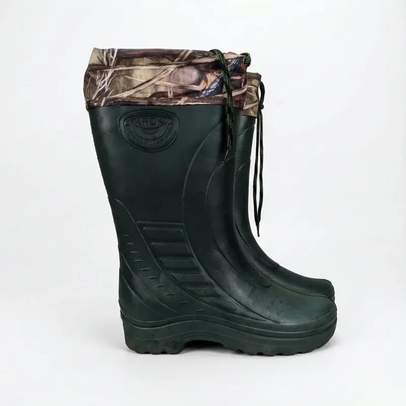 Чоловічі чоботи Krok із піни ЕВА — надійний захист від холоду та вологи. Ця модель ідеально підходить для зимової риболовлі, полювання, роботи на вулиці або в саду в холодну пору року. Це експортна партія компанії Krok (бірка Alaska), що гарантує підвищену якість лиття та матеріалів. Чому варто обрати саме ці чоботи: Неймовірна легкість: Матеріал ЕВА (пінка) у 4 рази легший за звичайну гуму. Ноги не втомлюються навіть при тривалій ходьбі. Теплоізоляція до -30°C: Завдяки пористій структурі матеріалу та теплому вкладишу, чоботи працюють як термос, зберігаючи тепло всередині. Водонепроникність: Чобіт відлитий цілком, не має швів, тому гарантовано не протікає у воді чи сніговій каші. Знімний утеплювач: Внутрішня вкладка з овчини легко виймається. Її можна випрати та швидко висушити на батареї. Еластичність: Піна ЕВА залишається гнучкою і не тріскається навіть при сильних морозах. Характеристики: Сезон: Зима / Холодна осінь Матеріал: ЕВА (піна) Утеплювач: Знімна панчоха (овчина/хутро) Висота: Повноцінний чобіт, захищає від глибокого снігу Виробник: Україна (Krok) 👉 Розмірна сітка (довжина устілки): (Обов'язково заміряйте вкладку перед відправкою!) 41 р — ... см 42 р — ... см 43 р — ... см 44 р — ... см 45 р — ... см 46 р — ... см
