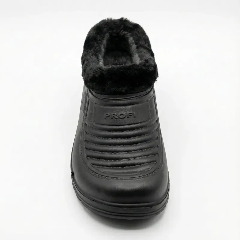Сухі та теплі ноги за будь-якої погоди! Чоловічі утеплені калоші від бренду PROFI — це ідеальне рішення для сльоти, снігу та бруду. Виготовлені із сучасного матеріалу EVA (спінений каучук), вони повністю водонепроникні та неймовірно легкі. Це взуття, яке ви просто не відчуваєте на ногах, але яке надійно захищає вас від холоду. Незамінні для господаря Модель PROFI створена для тих, хто цінує практичність. Потрібно вийти у двір, розчистити сніг, сходити в магазин у дощ або поїхати на зимову риболовлю? Ці короткі чобітки впораються з будь-яким завданням краще за важкі шкіряні черевики. Чому варто обрати калоші PROFI? ☁️ Невагомість. Матеріал ЕВА в 4 рази легший за звичайну гуму. Ноги не втомлюються навіть після цілого дня ходьби. 🌡️ Ефект термоса. Піна має пористу структуру, яка не пропускає холод від землі. А всередині калоші утеплені густим штучним хутром, що зберігає тепло навіть у мороз. 💧 100% Вологозахист. Калоші відлиті цільним шматком (без швів), тому вони гарантовано не протікають. ⚡ Зручність. Широка горловина дозволяє взуватися за секунду без допомоги рук (Slip-on). Розмірна сітка: В наявності розміри 41, 42, 43, 44, 45. Модель повномірна, підходить на широку ногу та високий підйом. Характеристики: Бренд: PROFI Сезон: Зима / Осінь / Весна Матеріал верху: Піна ЕВА (EVA) Утеплювач: Штучне хутро (незнімне) Колір: Чорний Вага пари: ~300 г