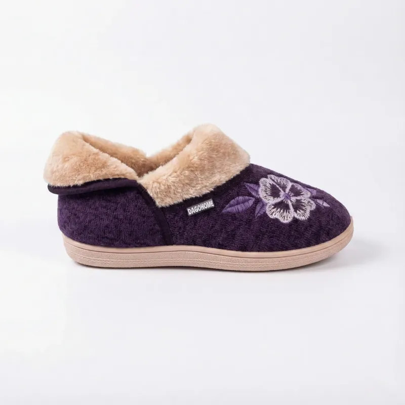 Дуже красиві та неймовірно теплі домашні чуні від перевіреного бренду Dagohome. Ця модель поєднує в собі елегантний дизайн та максимальний комфорт. Насичений фіолетовий колір верху гармонійно доповнюється акуратною вишивкою у вигляді квітки, що робить це взуття чудовим варіантом для подарунка близькій людині. Верх виготовлений з м'якого велюрового текстилю, приємного на дотик. Головна "родзинка" моделі — широка та пухнаста хутряна облямівка (опушка) бежевого кольору, яка огортає ногу теплом. Усередині чуні також утеплені густим еко-хутром, тому ваші ноги не змерзнуть навіть на холодній підлозі. Підошва прошита, виготовлена з еластичного ПВХ/поліуретану, має невелику танкетку для правильного положення стопи. Вона міцна, не ковзає та дозволяє комфортно пересуватися по дому. Характеристики: Сезон: Зима / Осінь Виробник: Dago Style (Україна) Матеріал верху: Текстиль (велюр/фліс) Матеріал підкладки: Тепле еко-хутро Декор: Вишивка «Квітка», нашивка бренду Колір: Фіолетовий (Баклажан) Підошва: ПВХ (прошита) Розміри в наявності: 37, 38, 39, 40, 41