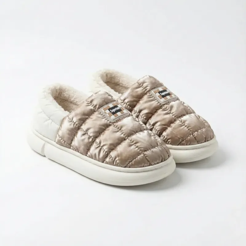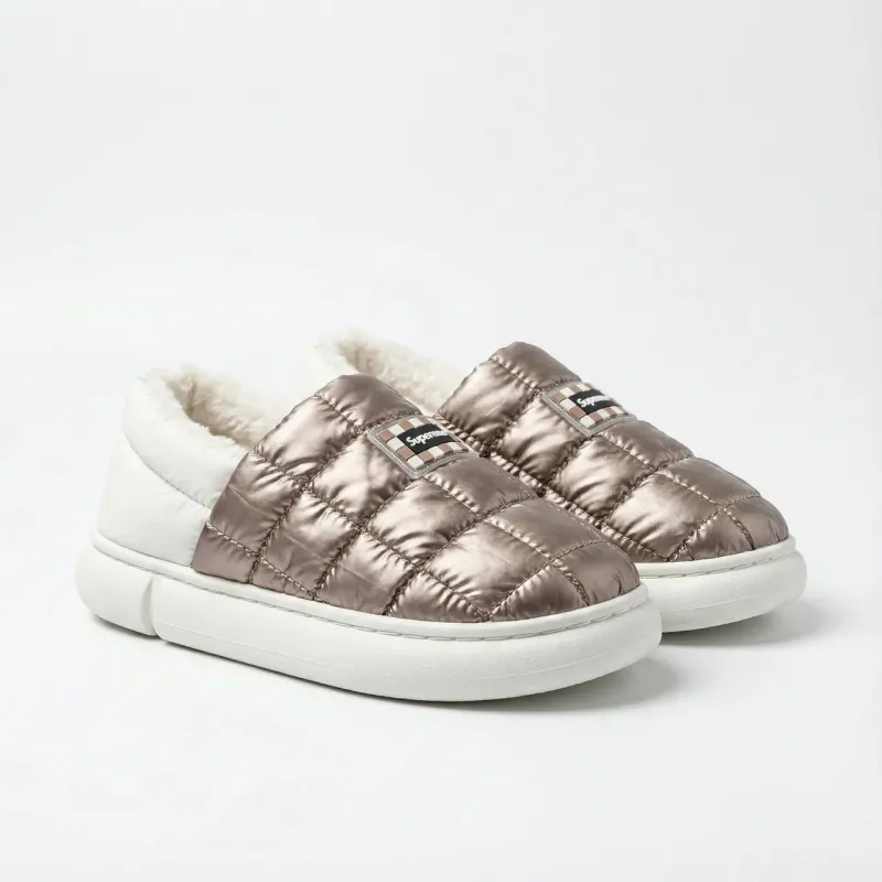Стильні, легкі та неймовірно зручні короткі дутики-уггі кольору "кава з молоком". Ця модель — справжній хіт сезону, що поєднує комфорт домашніх капців та практичність вуличного взуття. Завдяки широкому розмірному ряду (від 36 до 45) модель чудово підійде як жінкам, так і підліткам або навіть чоловікам як акуратне змінне взуття. Верх виконаний з якісної стьобаної плащівки з ефектом металік (бронза), яка не боїться вологи та легко чиститься. Всередині — м'яке та густе еко-хутро, що забезпечує тепло та затишок. Завдяки низькій посадці та еластичному заднику взуття взувається за секунду без зайвих застібок (формат сліпонів). Потовщена підошва надійно ізолює стопу від холодної землі. Це ідеальний варіант для тих, хто багато часу проводить за кермом, або шукає максимально м'яке взуття для прогулянок. Характеристики: Сезон: Зима / Пізня осінь Матеріал верху: Водовідштовхувальна плащівка (нейлон) Матеріал підкладки: Густе штучне хутро (плюш) Колір: Кавовий / Бронза (Coffee) Підошва: ПВХ (потовщена, 2.5 см) Особливості: Широкий розмірний ряд, стиль «Автоледі» Країна виробник: Китай Розміри в наявності: 36, 37, 38, 39, 40, 41, 42, 43, 44, 45