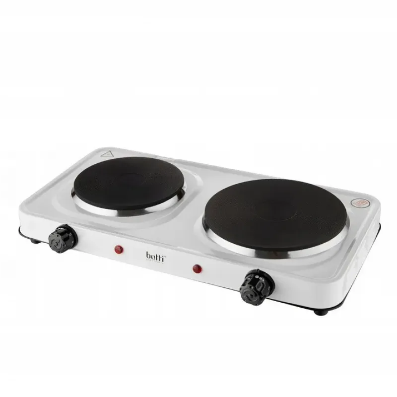 Електрична плита настільна Botti Cucini 2500 Вт (2 конфорки). Біла побутова електроплитка для дачі та гуртожитку