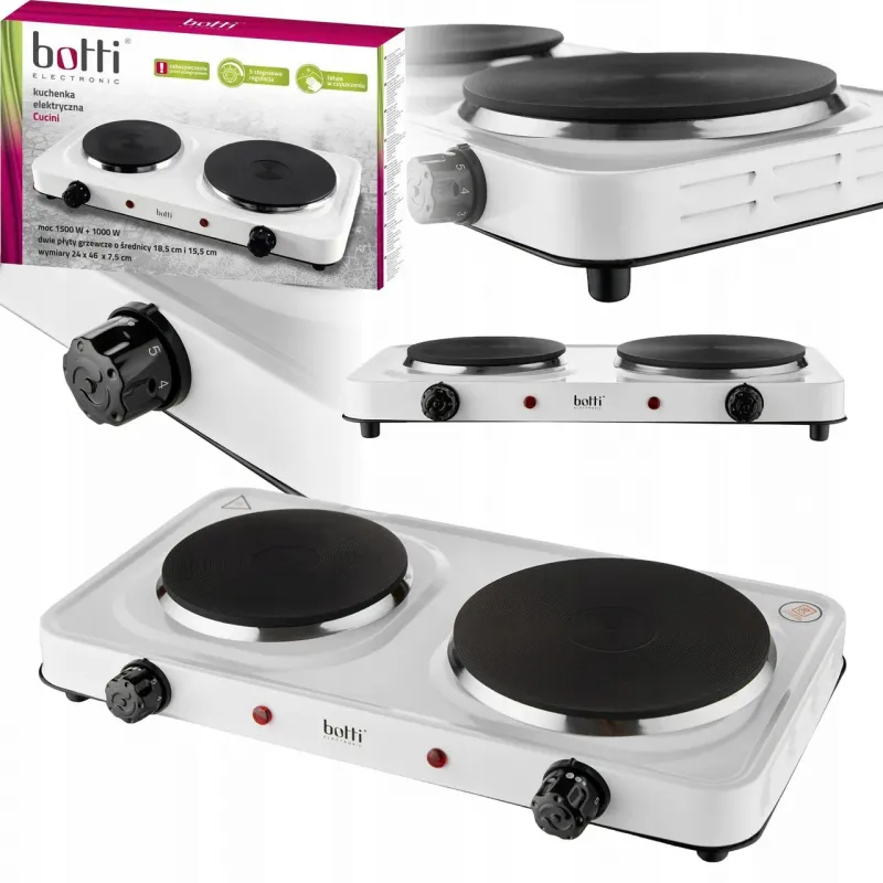 🛒 Шукаєте надійний товар? Ви можете купити Електрична плита настільна Botti Cucini 2500 Вт (2 конфорки). Біла побутова електроплитка для дачі та гуртожитку в нашому інтернет-магазині Shtyrman. Гарантія якості та швидка доставка по всій Україні!