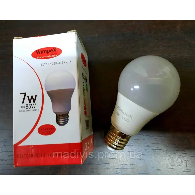 Енергоощадна лампа WimpeX, 7W E27 — це лампа, яка має великий світловидатність і сприяє чималому заощадженню електроенергії. Вирізняється високою якістю передавання кольору та стабільністю світлового потоку впродовж усього терміну експлуатації. Термін використання 15 000 годин, світловий потік 550 Lm.