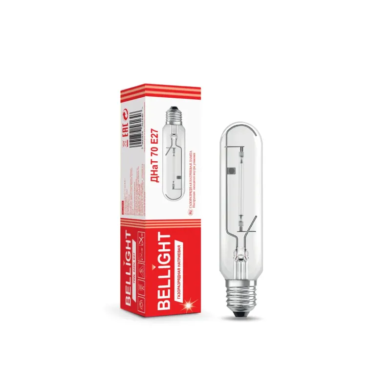 Газорозрядна лампа ДНаТ 70W з цоколем E27 застосовується для загального освітлення вулиць, шосе, територій промислових підприємств. Лампа працює в комплекті з відповідним ПРА (пускорегулюючим апаратом). Для розпалювання лампи необхідно ІЗП (імпульсний пристрій, що запалює). Термін служби натрієвих ламп вищий, ніж у інших типів газорозрядних ламп, що є зручним фактором за умови складної заміни лампи.