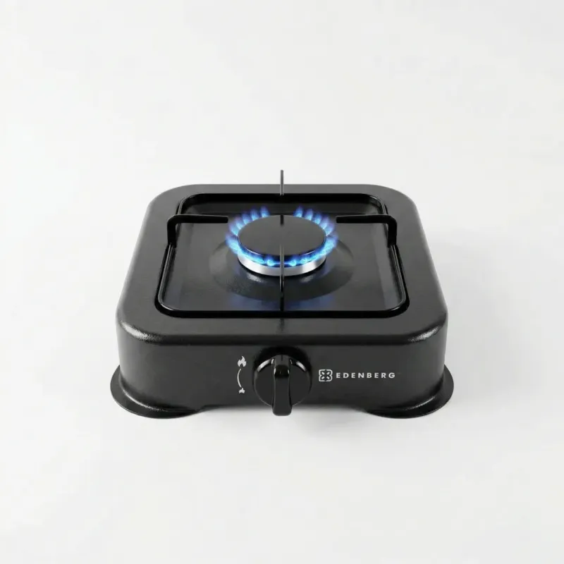 Компактна та надійна настільна газова плита Edenberg EB-62301 на одну конфорку — ідеальне рішення для приготування їжі там, де немає стаціонарного газу. Вона незамінна для дачі, літньої кухні, гуртожитку або невеликої квартири. Переваги моделі: Стильний дизайн: Плита має сучасне покриття з жароміцної емалі чорного кольору, яка не тільки гарно виглядає, але й легко миється від жиру та бруду. Зручність: Плавне регулювання полум'я за допомогою механічної ручки дозволяє вибрати оптимальну температуру для готування. Надійність: Міцна металева решітка стійка до високих температур і витримує вагу каструль та сковорідок. Мобільність: Завдяки невеликій вазі та компактним розмірам, плитку легко транспортувати та встановлювати на будь-якій рівній поверхні. Плита призначена для підключення до газового балона (пропан/бутан) через шланг (не входить у комплект). Характеристики: Виробник: Edenberg Модель: EB-62301 Кількість конфорок: 1 Покриття: Емаль Колір: Чорний Управління: Поворотний перемикач Тип установки: Настільна