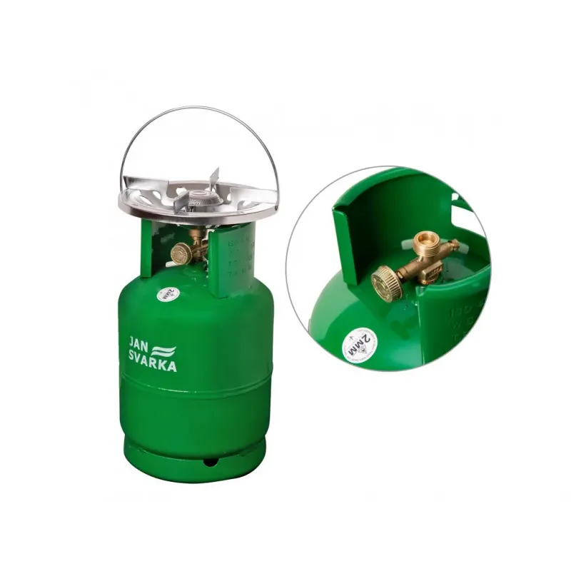 Надійний газовий комплект Jan Svarka на 8 літрів — незамінна річ у побуті та на природі. Ця модель маркується як VIP серія, тому що виготовлена з потовщеного металу (стінка 2 мм), що гарантує підвищену безпеку та стійкість до механічних пошкоджень. Кран-вентиль виготовлений із латуні (а не силуміну), що забезпечує довговічність різьби та герметичність. Де використовувати: Вдома: Для приготування їжі при відключеннях світла (газу вистачає на кілька тижнів економного використання). Туризм: На риболовлі, полюванні чи в кемпінгу. Авто: Ідеально для далекобійників та водіїв (приготувати каву, розігріти обід). Переваги моделі Jan Svarka 8л: Економія: Заправка на АЗС коштує копійки порівняно з одноразовими цанговими балончиками. Потужність: Велика конфорка дозволяє ставити великі каструлі та сковорідки. Безпека: Товсті стінки балона витримують високий тиск. Зручність: Зручна металева ручка для перенесення. Характеристики: Об'єм: 8 літрів (заправляти не більше 6-7 л для безпеки!) Товщина металу: 2 мм Матеріал крана: Латунь посилена Потужність пальника: 2200 Вт Витрата газу: 100-150 г/год