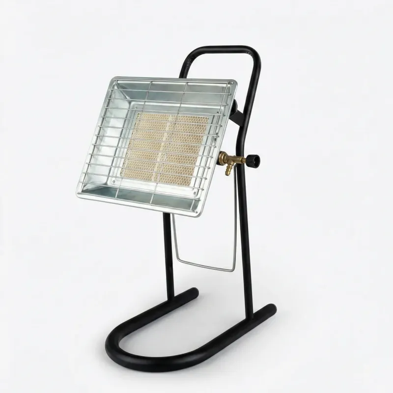 Забезпечте теплом своє робоче місце або господарське приміщення за лічені хвилини! Цей портативний газовий обігрівач на зручній підставці — ідеальне рішення для гаражів, майстерень, складів, теплиць або будівельних майданчиків, де немає стаціонарного опалення. Переваги моделі: Ефективний нагрів: Керамічний елемент швидко нагрівається та віддає тепло за допомогою інфрачервоного випромінювання, нагріваючи предмети та людей, а не лише повітря. Зручна конструкція: Обігрівач закріплений на стійкій металевій ніжці з U-подібною основою. Це дозволяє безпечно розмістити його на підлозі подалі від газового балона. Регулювання нахилу: Конструкція дозволяє змінювати кут нахилу пальника, щоб направити потік тепла в потрібну зону. Безпека: Передня частина захищена металевою решіткою, що запобігає випадковому торканню до розпеченої кераміки. Просте підключення: Обладнаний штуцером для підключення газового шланга та краном-регулятором подачі газу. Характеристики: Тип: Інфрачервоний газовий пальник Тип нагрівального елемента: Кераміка Установка: Підлогова (на ніжці) Паливо: Пропан/Бутан (скраплений газ) Особливості: Регулювання кута нахилу, захисна решітка