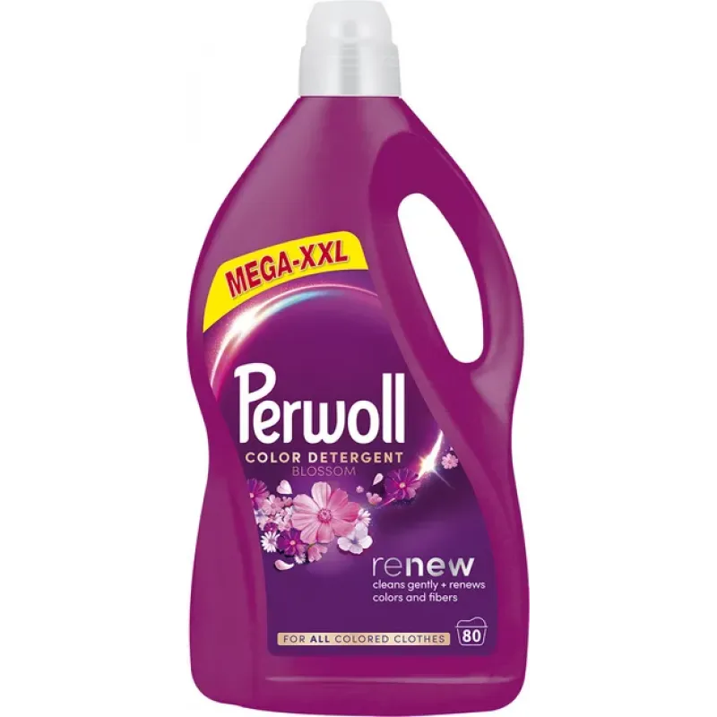 **Гель для прання Perwoll Color Renew Blossom Mega-XXL (80 прань)** – це преміальний рідкий засіб, спеціально створений для інтенсивного догляду за вашими кольоровими речами. Його унікальна формула Renew не лише забезпечує глибоке очищення, а й активно відновлює яскравість кольорів та гладкість волокон, надаючи одягу чудового квіткового аромату.