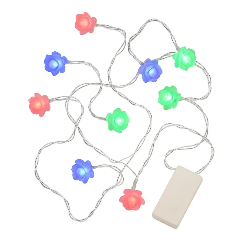 Гирлянда светодиодная цветочки разноцветные, провод прозрачный, 3м