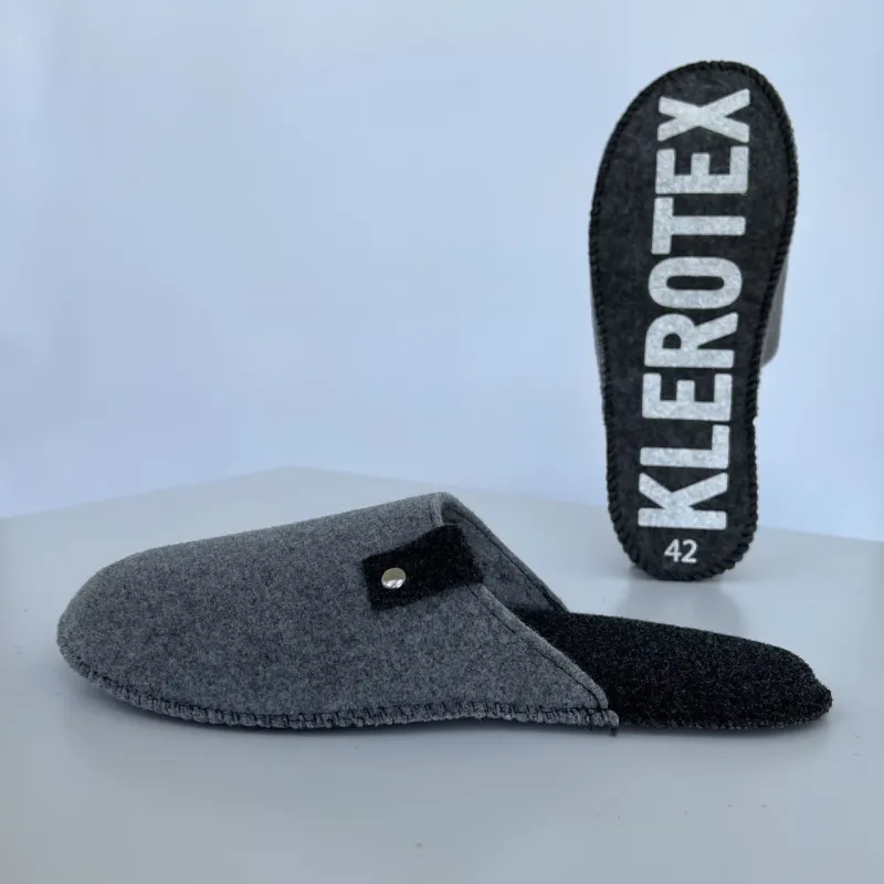 Паркетні чоловічі тапочки Klerotex. Тренд цього року - відкриті або закриті тапочки з натуральних матеріалів. При виготовлені нашої продукції , ми використовуємо матеріал -повсть , він екологічний і не містить матеріалів тваринного походження. Тапочки відрізняються простотою догляду, добре витримують прання в машинці . Підошва даної моделі тапочка зроблена з повсті, а внизу нанесена спеціальна зносостійка, нековзна вставка у вигляді логотипу. Така підошва робить домашнє взуття невагомим і комфортним у носінні. Купуючи пару для себе, згадайте гостей, які люблять навідуватися до вас. І про рідних, яким теж хочеться мати вдома зручне взуття.