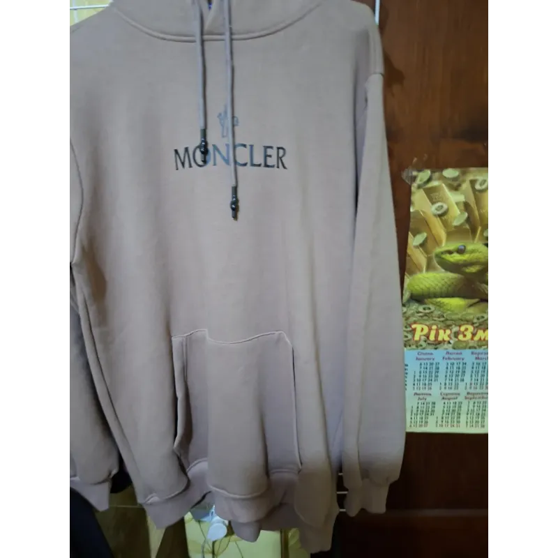 Худі жіноче тепле бежеве Moncler з капюшоном. Зимова кофта на флісі 48-52