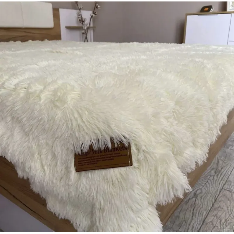 Хутряний плед-покривало травичка Євро розміру 220/240см. колір Молочний