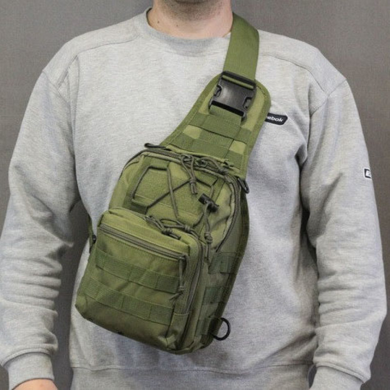 Качественная тактическая сумка, укрепленная мужская сумка рюкзак тактическая слинг. Цвет: хаки