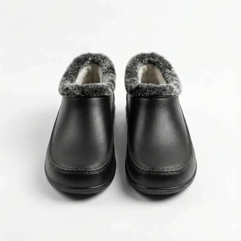 Чоловічі зимові калоші з хутряною оторочкою — класичний стиль та тепло! Ця модель — чудовий вибір для тих, хто шукає практичне взуття, яке виглядає охайно і стримано. Завдяки гладкій фактурі матеріалу, ці калоші візуально нагадують шкіряні черевики, але при цьому мають усі переваги вологостійкого взуття. Переваги цієї моделі: Дизайн "під шкіру": Гладка поверхня з імітацією текстури шкіри та декоративним швом на носку (в стилі мокасин) надає взуттю презентабельного вигляду. Тепло: Всередині калоші утеплені густим хутром (суміш вовни), а м'яка хутряна облямівка зверху додатково зігріває щиколотку і захищає від холоду. Практичність: Матеріал (EVA/ПВХ) повністю водонепроникний, легко миється від бруду і не вимагає складного догляду, як натуральна шкіра. Зручність: Низька посадка дозволяє легко взувати їх без допомоги рук, як звичайні капці, але закрита п'ята надійно тримає ногу. Характеристики: Сезон: Осінь / Зима. Матеріал верху: Піна EVA / ПВХ (гладка текстура). Утеплювач: Штучне хутро (сіро-чорне). Колір: Чорний. Розміри: 40, 41, 42, 43, 44, 45. 🥾 Обирайте класичні утеплені калоші — комфорт та сухість за будь-якої погоди!