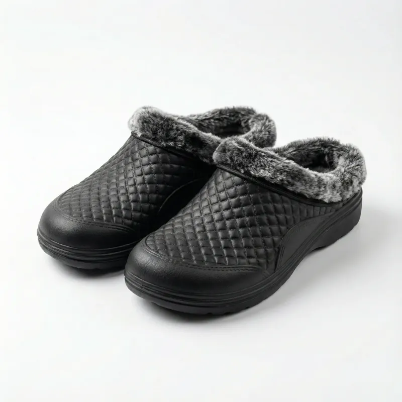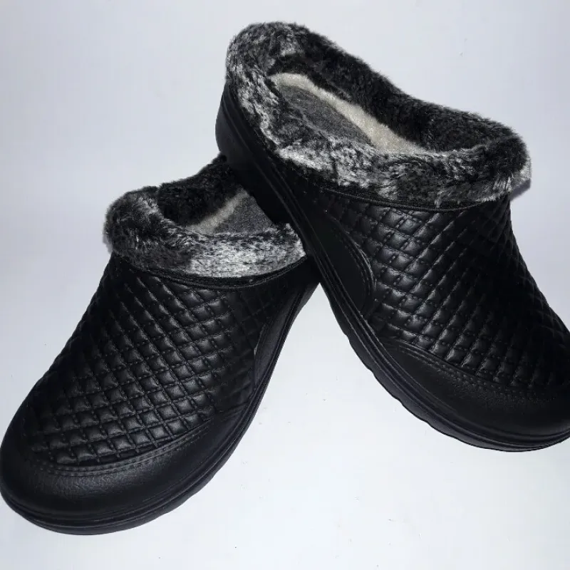 Чоловічі зимові калоші (сабо) зі стьобаним візерунком — стиль та комфорт в одній парі! Ця модель доводить, що навіть робоче або дачне взуття може виглядати стильно. Калоші виконані з легкого матеріалу EVA з імітацією стьобаної шкіри (візерунок "ромб"), що надає їм сучасного та акуратного вигляду. Чому варто обрати саме цю модель: Стильний дизайн: Рельєфна поверхня у вигляді ромбів виглядає дорого і цікаво, відрізняючись від звичайних гладких калош. Тепло: Внутрішня частина утеплена густим штучним хутром (під овчину/вовну), яке надійно зберігає тепло і приємне до ноги. Хутряний манжет додає додаткового затишку. Водонепроникність: Суцільнолита основа з піни EVA не пропускає воду, бруд та сльоту. Ідеально для дощової погоди, роботи в саду чи на городі. Легкість: Взуття майже невагоме, не втомлює ноги навіть при тривалому носінні. Характеристики: Сезон: Осінь / Зима / Весна. Матеріал верху: Піна EVA (фактурна). Утеплювач: Штучне хутро (незнімне). Колір: Чорний. Розміри: 41, 42, 43, 44, 45. 👞 Замовляйте стильні стьобані калоші — працюйте та відпочивайте красиво і в теплі!