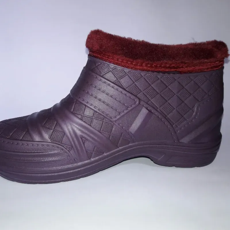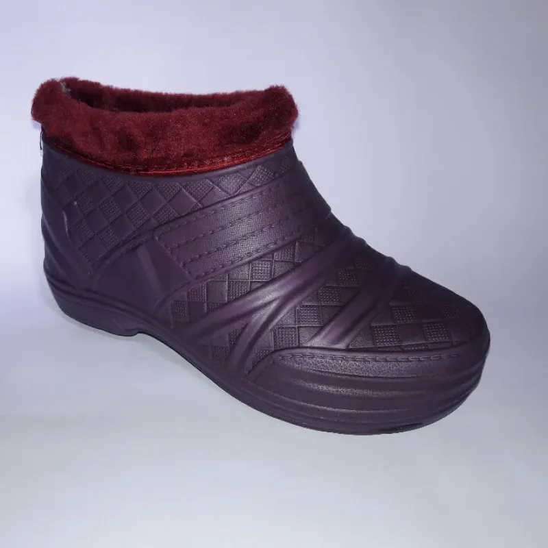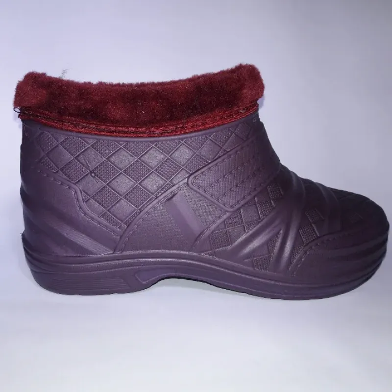Жіночі утеплені калоші з піни — забудьте про мокрі ноги та холод! Ці легкі напівчобітки виготовлені із сучасного матеріалу EVA (пінка), який відрізняється неймовірною легкістю та відмінними термоізоляційними властивостями. У такому взутті ваші ноги завжди будуть сухими та теплими, навіть якщо на вулиці сльота чи мокрий сніг. Чому варто обрати цю модель: Невагомість: Матеріал EVA настільки легкий, що взуття майже не відчувається на нозі. Тепло: Всередині калоші утеплені м'яким хутром, а зверху прикрашені стильним хутряним відворотом бордового кольору, який захищає від задування вітру. Водонепроникність: Суцільнолита основа гарантує 100% захист від вологи. Дизайн: Гарний фіолетовий колір із рельєфним візерунком виглядає охайно та жіночно. Зручність: Легко взувати та знімати без зайвих застібок. Характеристики: Сезон: Осінь / Зима / Весна. Матеріал верху: Піна EVA (вологостійка). Утеплювач: Штучне хутро. Колір: Фіолетовий (Баклажан). Розміри: 38, 39, 40, 41, 42. ☔ Замовляйте теплі калоші з піни — комфорт для ваших ніжок у будь-яку погоду!