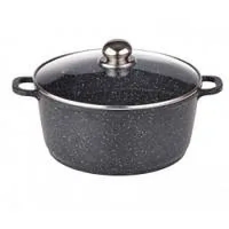 Посуд підходить для використання на газових, склокерамічних, електричних, галогенових та індукційних плитах. Виріб можна мити в посудомийній машині. Висока якість алюмінію гарантує стійкість до корозії при стандартному миття. Легке та швидке нагрівання. Підходить для всіх кухонних плит. Мармурове антипригарне покриття. Стійкість до високої температури. Швидкий та рівномірний розподіл тепла для приготування їжі з невеликою кількістю жиру. Об’єм 6.4 л.