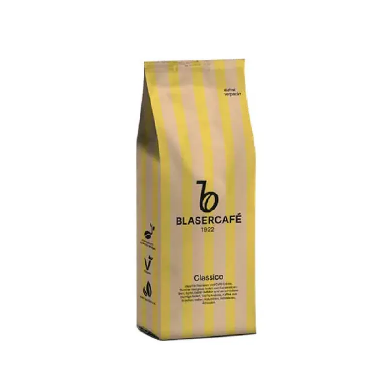 BlaserCafe Classico – це класична суміш арабіки та робусти, створена для шанувальників традиційного європейського еспресо. Кава має гармонійний баланс смаку з нотами темного шоколаду, горіхів і карамелі, які надають напою насичений аромат і приємний післясмак. Середнє обсмаження зберігає природну солодкість зерен і помірну кислотність.
