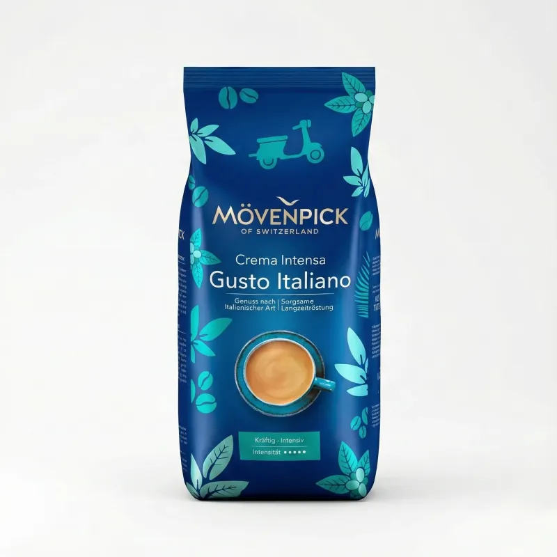 Movenpick Caffe Crema Gusto Italiano – це преміальна кава, створена для справжніх гурманів. Суміш 90% арабіки та 10% робусти, обсмажена за традиційною італійською темною технологією, надає напою насичений смак із карамельно-шоколадними нотками та стійкою кремовою пінкою.