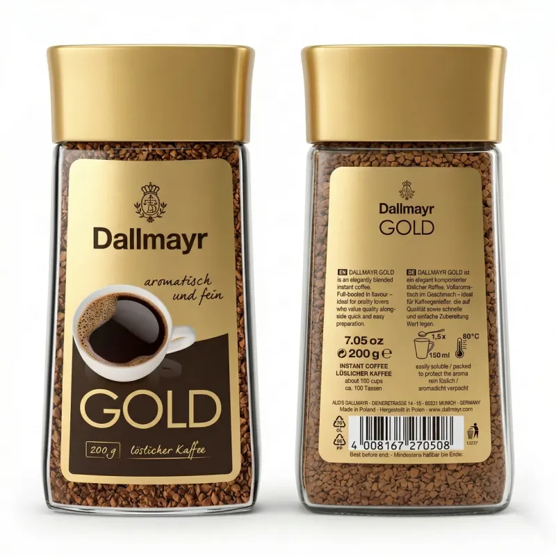 🛒 Шукаєте надійний товар? Ви можете купити Кава розчинна Dallmayr Gold 200 г (скло) | Німецька сублімована кава Даллмаєр Голд Оригінал в нашому інтернет-магазині Shtyrman. Гарантія якості та швидка доставка по всій Україні!