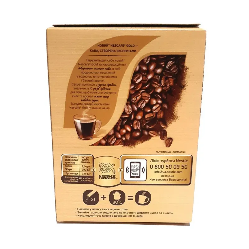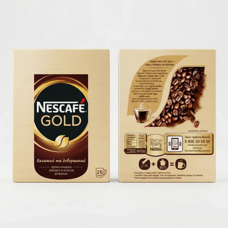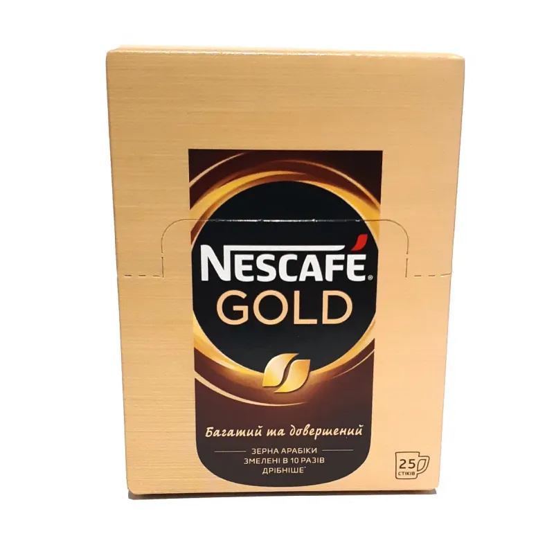 Кава розчинна Nescafé Gold 25 стіків (упаковка) | 100% Арабіка, Змелена в 10 разів дрібніше, Преміум