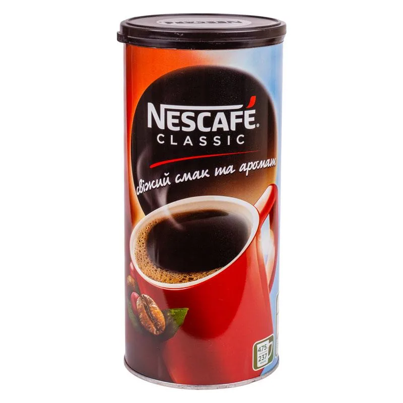 Кава розчинна Nescafe Classic 475 г (залізна банка) | Гранульована, Міцна, Велика упаковка