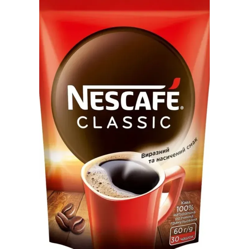 Придбати **розчинну каву Nescafe Classic, 60г у м'якій упаковці** ви можете в нашому інтернет-магазині **Shtyrman390.com.ua**. Ми пропонуємо тільки оригінальну продукцію за вигідними цінами з оперативною доставкою по Одесі та всіх регіонах України.