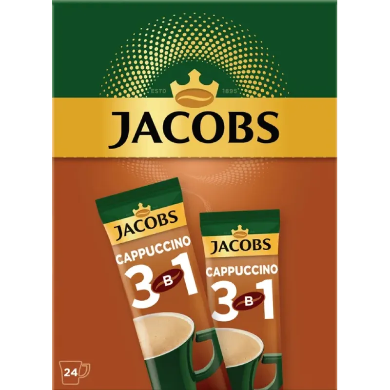 Придбати **кавовий напій Jacobs 3 in 1 Cappuccino 24 x 12.5 г (4820206290618)** ви можете в нашому інтернет-магазині **Shtyrman390.com.ua**. Ми пропонуємо широкий асортимент кави, солодощів, побутової хімії та товарів для дому за вигідними цінами з оперативною доставкою по Одесі та всім регіонам України.