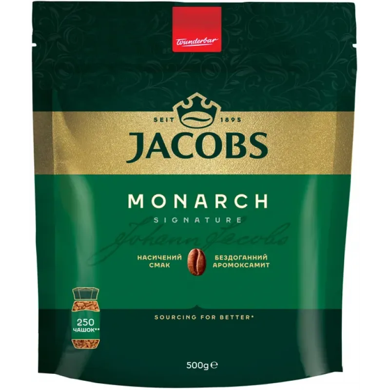 Замовте каву розчинну Jacobs Monarch 500 г та насолоджуйтесь чудовим ароматом та насиченим смаком щодня.