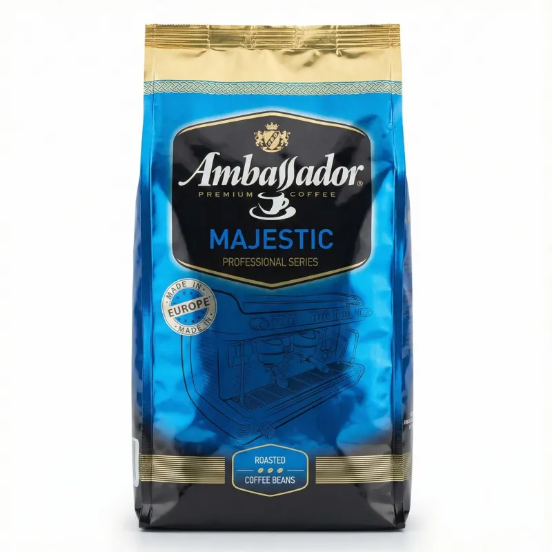 Ambassador Majestic — це спеціальний бленд із серії Professional Espresso Series, створений для приготування ідеального еспресо в автоматичних кавомашинах. Ця кава має темне обсмажування, що надає напою виразної міцності, необхідної для продуктивного робочого дня.
