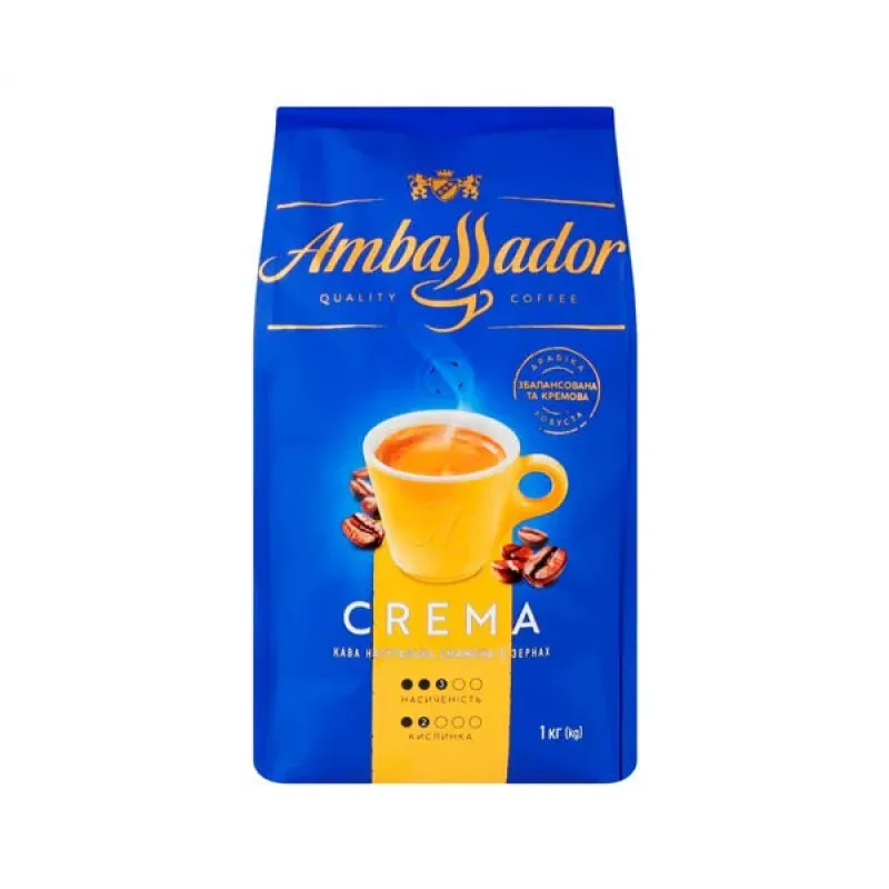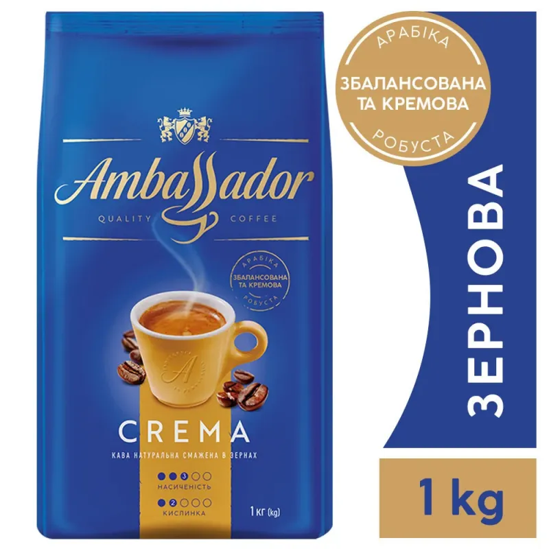 Кава в зернах Ambassador Crema 1 кг | Збалансована кава з пінкою, Арабіка та Робуста