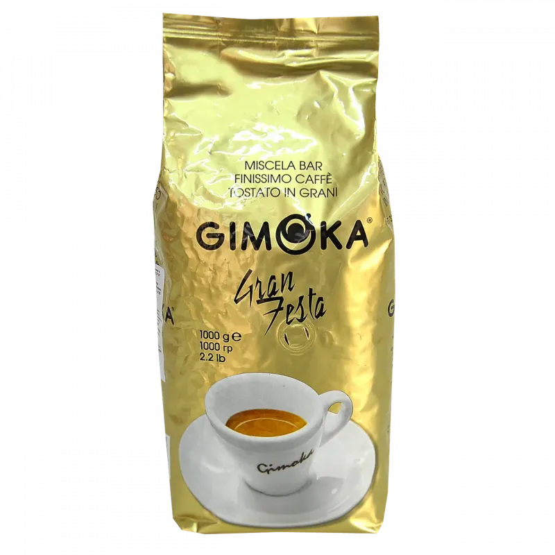 Кава в зернах Gimoka Gran Festa 1 кг | Насичена італійська кава, Інтенсивність 11, Золота пачка