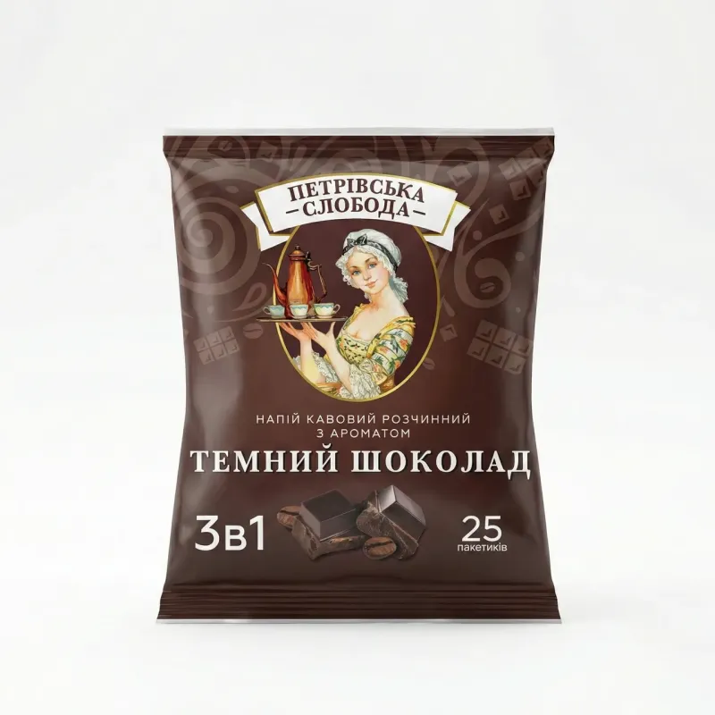 🛒 Шукаєте надійний товар? Ви можете купити Кавовий напій Петрівська Слобода 3в1 Темний Шоколад 25 пакетиків (упаковка) | Шоколадна кава, Десертний смак, Українська в нашому інтернет-магазині Shtyrman. Гарантія якості та швидка доставка по всій Україні!