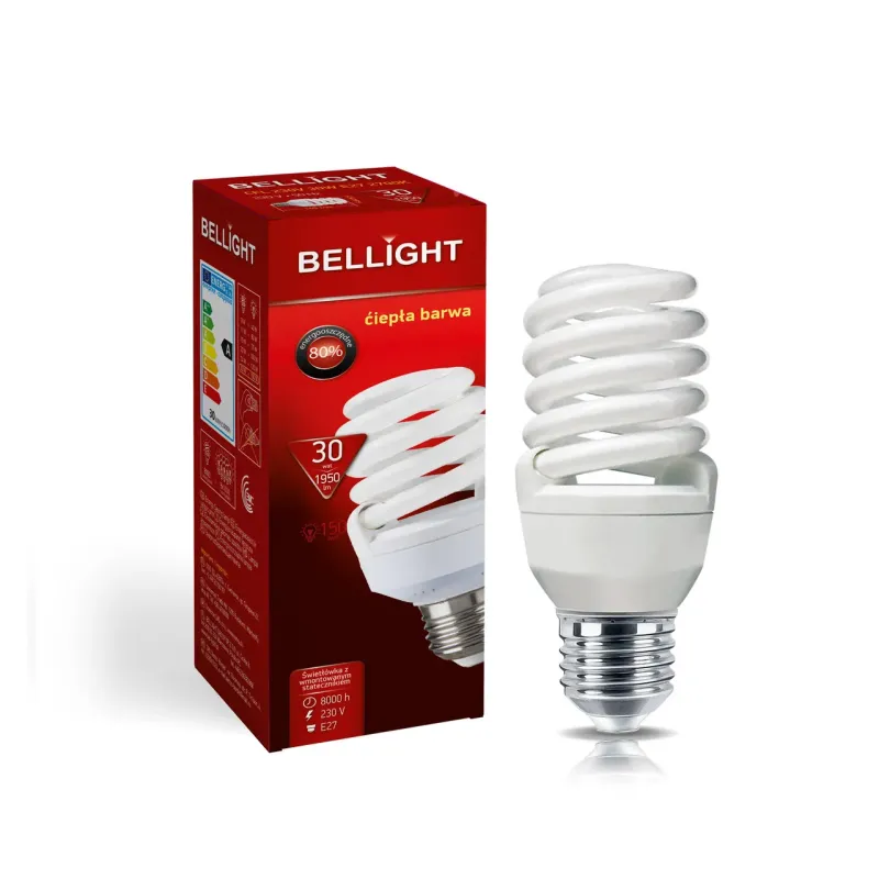 Компактні люмінесцентні лампи КЛЛ Bellight - це висока світловіддача і зменшені витрати на електроенергію до 80%. Клас ефективності споживання електроенергії - А