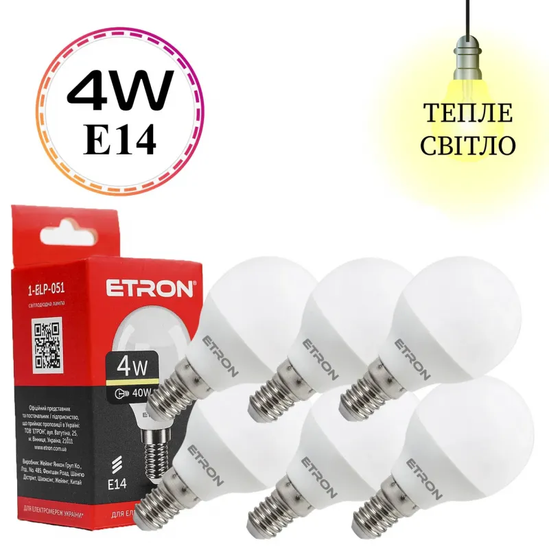 🛒 Шукаєте надійний товар? Ви можете купити Комплект світлодіодних ламп ETRON 4W G45 3000K 220V E14 тепле світло (6 штук) в нашому інтернет-магазині Shtyrman. Гарантія якості та швидка доставка по всій Україні!