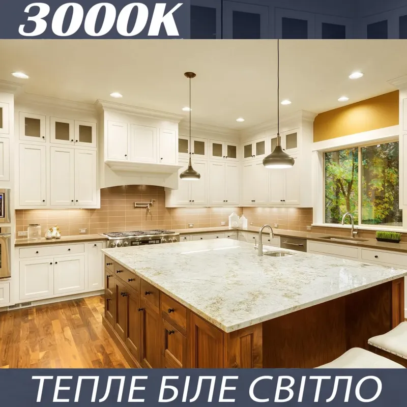 Тепле світло (3000K): Створює затишну атмосферу та комфортне освітлення.