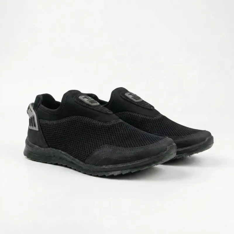 Ці чорні чоловічі сліпони — ідеальний гібрид легких мокасин та зручних кросівок. Модель розроблена для тих, хто не любить возитися зі шнурками, але хоче мати надійне взуття для активного дня. Чому ця модель варта уваги: Міцність та Захист: На відміну від звичайних сітчастих капців, ця модель має посилені вставки з еко-шкіри на носку та вздовж підошви. Це значно подовжує термін служби взуття та захищає пальці. Вентиляція: Основна частина верху виготовлена з "дихаючої" сітки, що забезпечує комфорт навіть у найспекотнішу погоду. Стильні деталі: На п'яті розташована декоративна вставка сірого кольору з написом, що додає взуттю сучасного спортивного вигляду та додатково фіксує стопу. Зручність: Еластичні гумки на підйомі дозволяють легко взуватися, а гнучка чорна підошва забезпечує м'якість кожного кроку. Характеристики: Тип: Сліпони / Кросівки без шнурків. Сезон: Літо / Тепла весна. Матеріал: Текстильна сітка + Еко-шкіра. Колір: Чорний (Black). Розміри: 41, 42, 43, 44, 45.