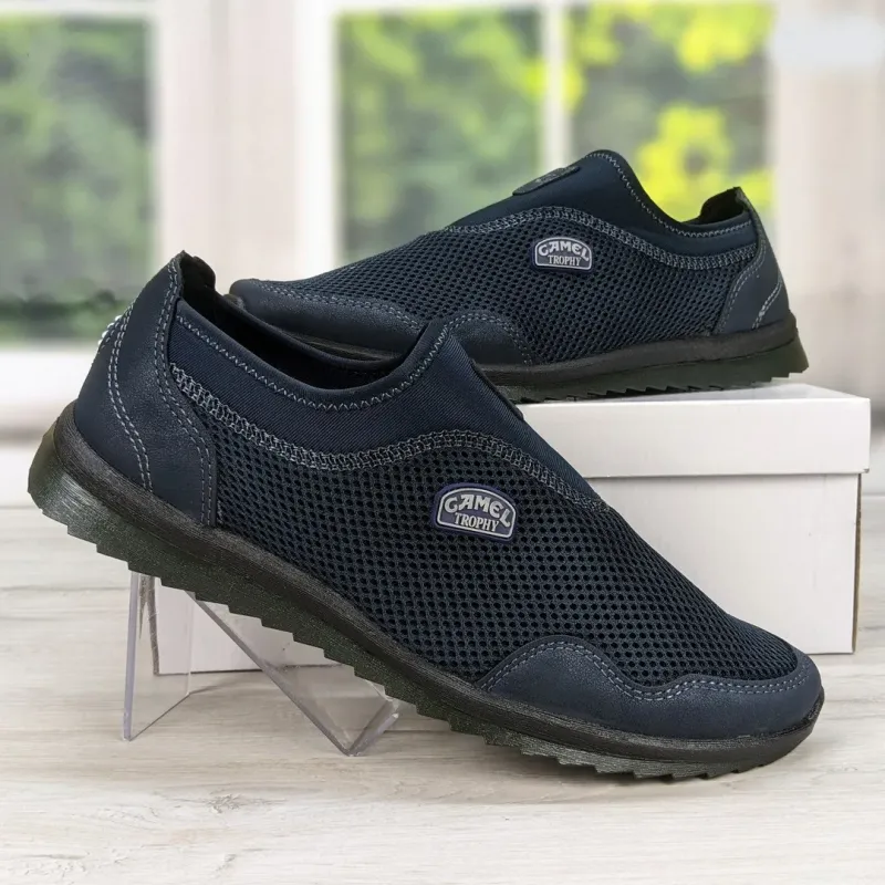 Чоловічі кросівки мокасини сітка сині Dago Style Чоловічі кросівки мокасини, сітка, в темно-синьому кольорі. Недороги та якісні, від української фабрики Dago Style. Підошва ПВХ, еластична та зручна. Верх із міцного текстилю (сітка), носок і п'ята посилені. Зверху гумка, яка добре фіксує ногу. Прекрасно підійдуть, як недороге повсякденне та робоче взуття. Виготовлені з якісних матеріалів. Весняно-літній варіант. Для вибору свого розміру дивіться розмірну сітку на цю модель: 41р — 26,8 см 42р — 27,5 см 43р - 28,3 см 44р - 29 см 45р - 29,8 см