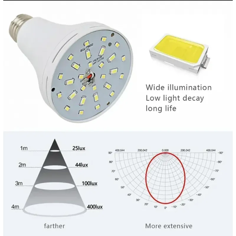Світлодіодна аварійна лампа E27, портативна лампа 7 Вт, 1500 мА·год, резервна лампа для дому, вимкнення електроенергії, намету.