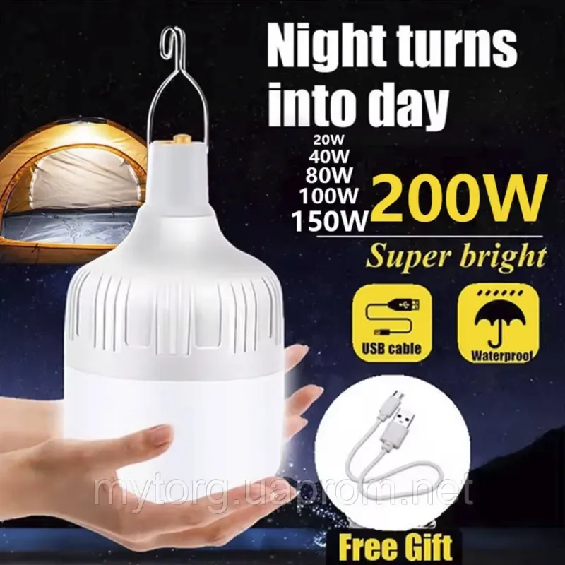 Лампа акумуляторна з гачком 200 Вт світлодіодна портативна 200 Вт