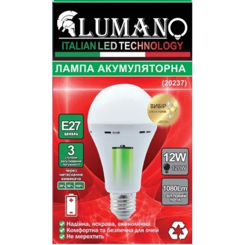 Лампа акумуляторна LED Emergency A70-12W 6000К Е27 (20237) гарантія 12міс TM LUMANO
