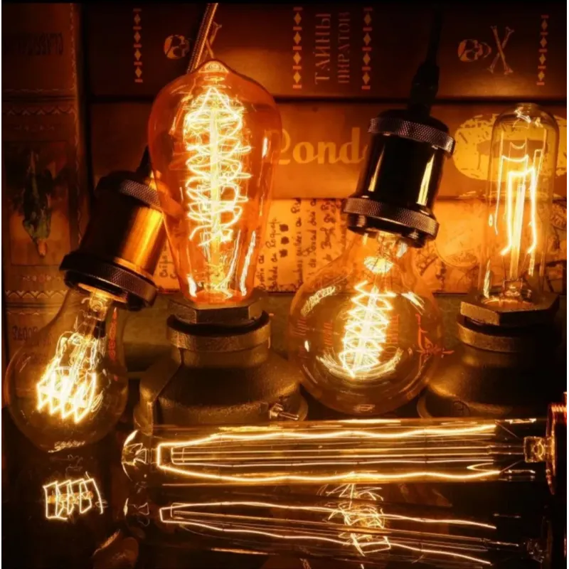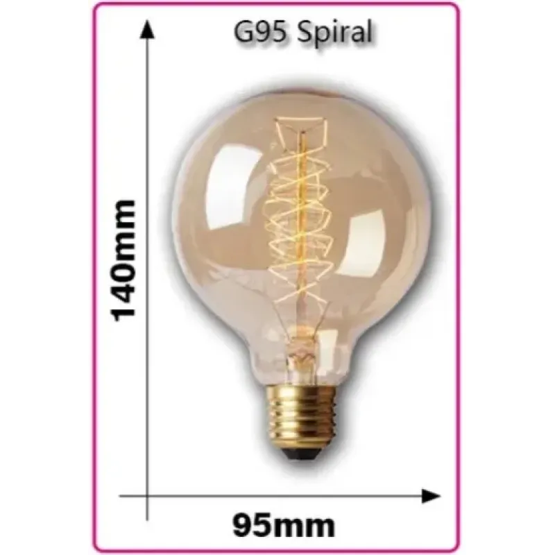 Лампа Едісона Е27,Лампочка розжарювання,кругла Лампочка зі спіралевидним елементом. лампа виготовлена з вольфраму, що забезпечує декоративне світіння.