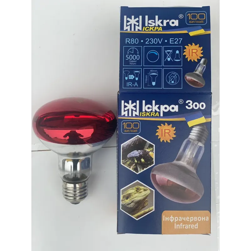 Лампа інфрачервона ІЧЗК 100 Вт "Іскра" в індивідуальному пакованні